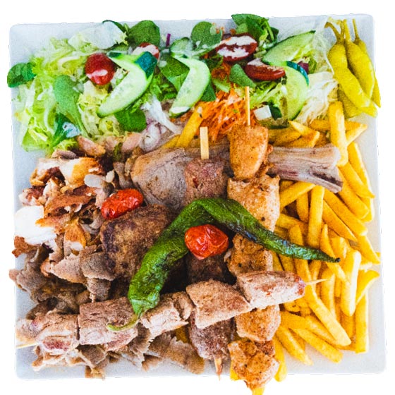 Rundsbrochette, döner kebap, kip kebap en köfte