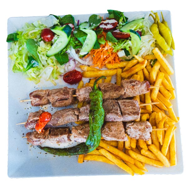 Kebap, verse uien, paprika’s & champignons